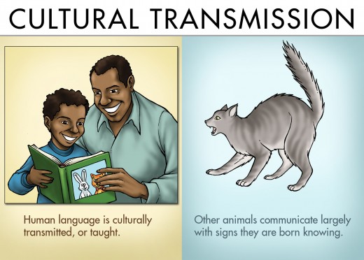 Another important difference is that human language is culturally transmitted. Human beings brought up in different cultures acquire different languages. Man can also learn other languages via the influence of other cultures. Animals lack this capacity. Their communication ability is transmitted biologically, so they are unable to learn other languages.