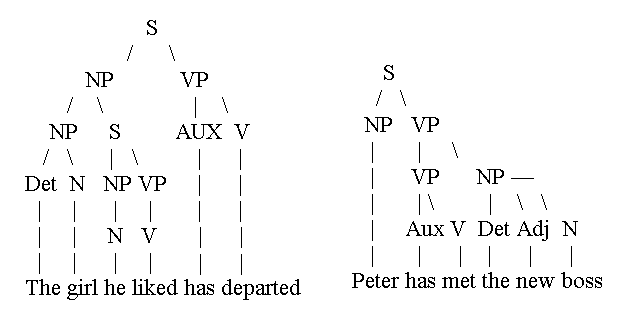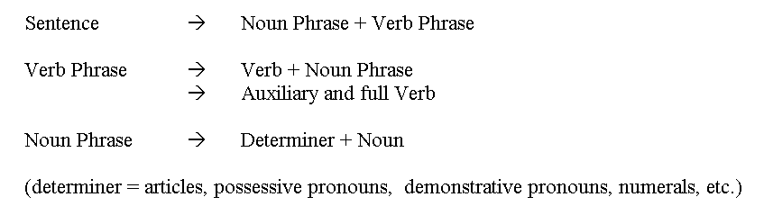 • Sentence structure is normally displayed by means of a tree diagram (the so-called 'phrase structure') and by a system of re-write rules one can move from an initial unit (the entire sentence) to the individual elements (a so-called 'terminal string').